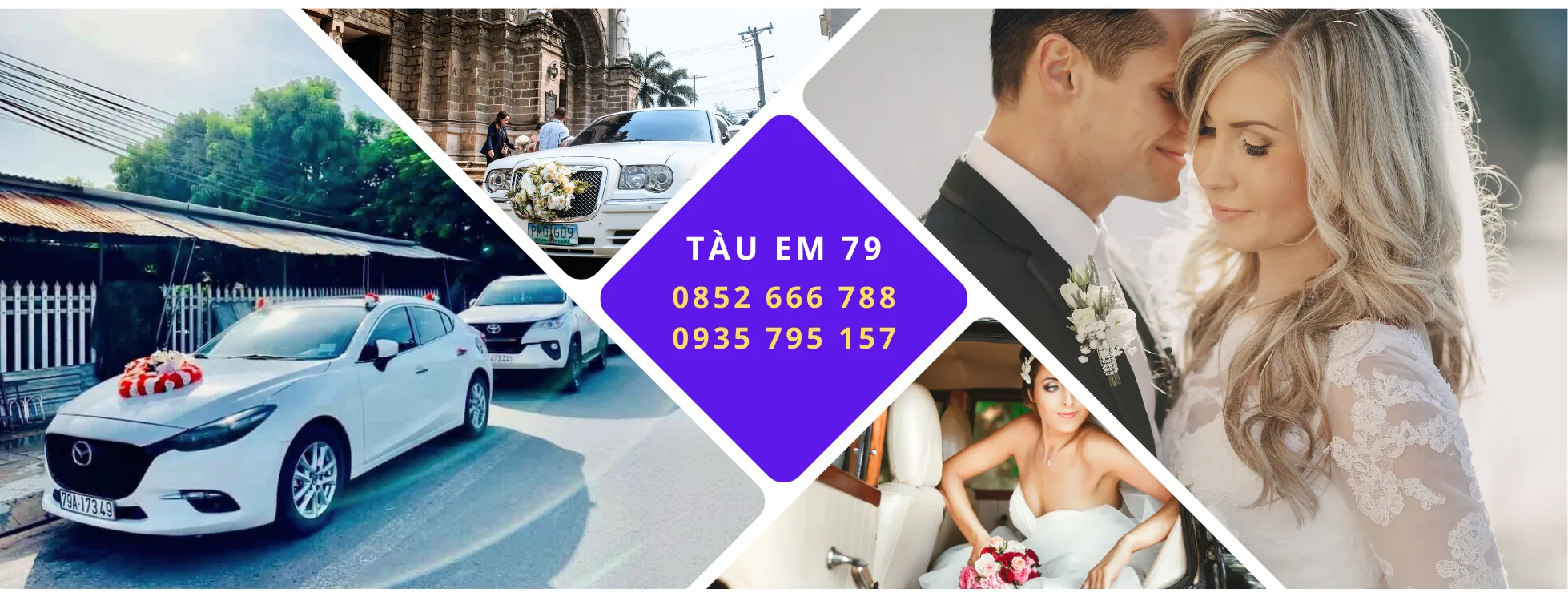 Dịch vụ thuê xe cưới hỏi tại Nha Trang, thuê xe 4 chỗ cho cô dâu chú rể, thuê xe 16 chỗ, 29 chỗ cho họ hàng 2 bên. DVDL Tàu Em 79 Nha Trang là một trong những đơn vị cho thuê xe cưới hỏi chuyên nghiệp tại Nha Trang. Có mặt nhanh chóng, đúng giờ, lái xe an toàn - chuyên nghiệp, hỗ trợ hết sức để cho cô dâu và chú rể có một ngày trọng đại thật ý nghĩa.